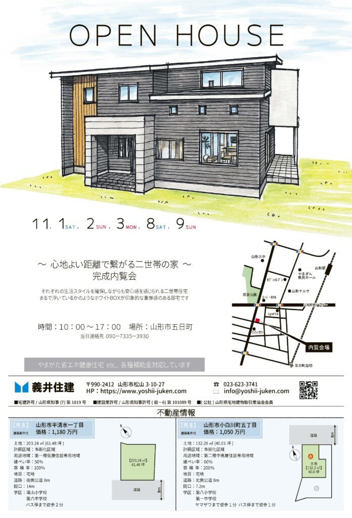 山形市五日町 完成内覧会 ご予約はWEB予約またはお電話にて承ります。 ご予約はこちら ご予約はこちらから Instagram 実際に触れて、体験していただく事で本物の良さや暮らしの設計・デザインを感じられると思っております。生涯安心できる暮らしを考え抜いた家を是非ご覧ください。