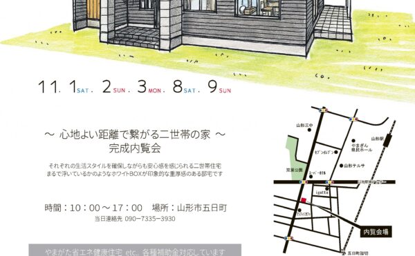 NEW 2025年10月16日完成内覧会yoshii-juken 完成内覧会のお知らせ11月1日㈯~3日㈪・8日㈯~9日㈰ 完成内覧会を開催いたします。 普段の生活スタイルは分かれていても 時には助け合い、共に楽しみを共有する 重厚感のある二世帯住宅です。 ぜひご来場ください。